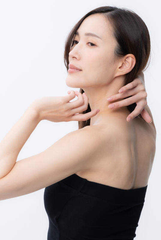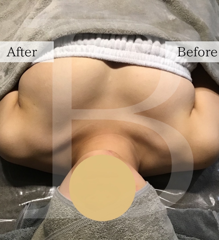 背中もすっきり美しく、肩甲骨の位置を整えることで華奢な背中に。